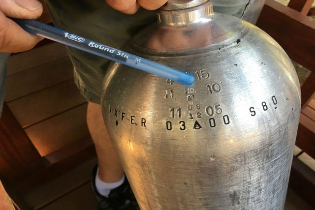 Según la normativa vigente a nivel nacional, las botellas de buceo, tienen que pasar una INSPECCIÓN VISUAL ANUAL para verificar su estado general exterior e interior y el estado de la válvula.